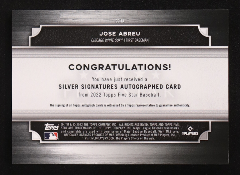 Jose Abreu 2022 Topps Five Star Silver Signatures Aqua #SSJA #15/30