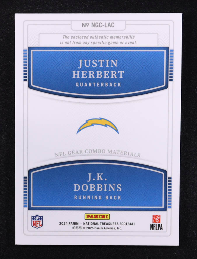 Justin Herbert / J.K. Dobbins 2024 Panini National Treasures NFL Gear Combo Materials #17 #17/99