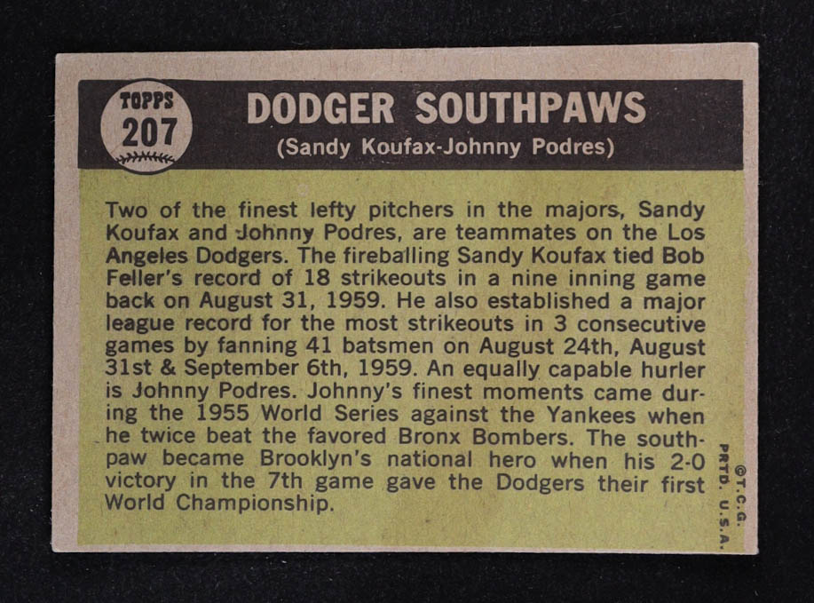 Sandy Koufax / Johnny Podres 1961 Topps #207 Dodger Southpaws