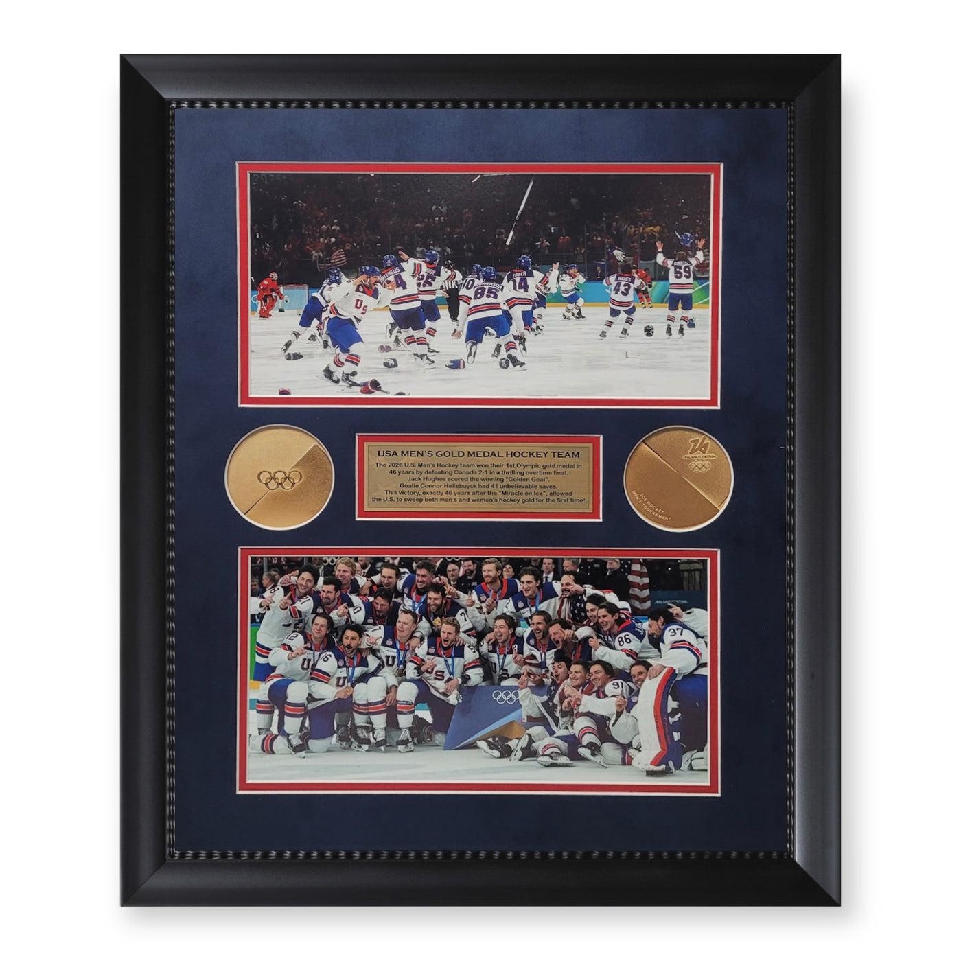 Custom frame measures 16” x 20” in size and features an unsigned photo of the 2026 Team USA men's hockey team! Please note, both of these photos are unsigned.