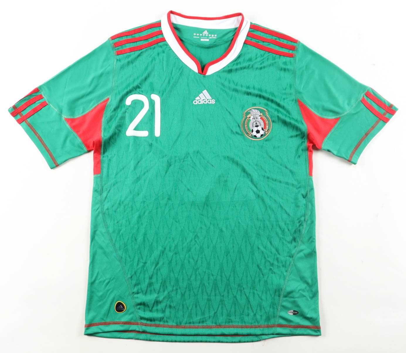 Adidas authentic jersey with everything pressed and sewn on, size L. Hand-signed by Adolfo Bautista (Mexico National Football Team).