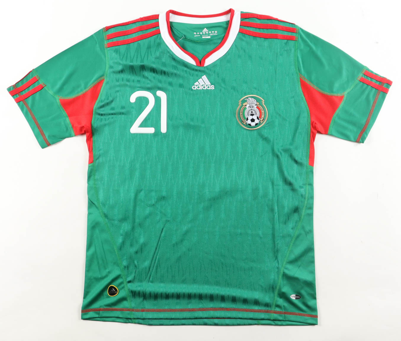 Adidas authentic jersey with everything pressed and sewn on, size M. Hand-signed by Adolfo Bautista (Mexico National Football Team).