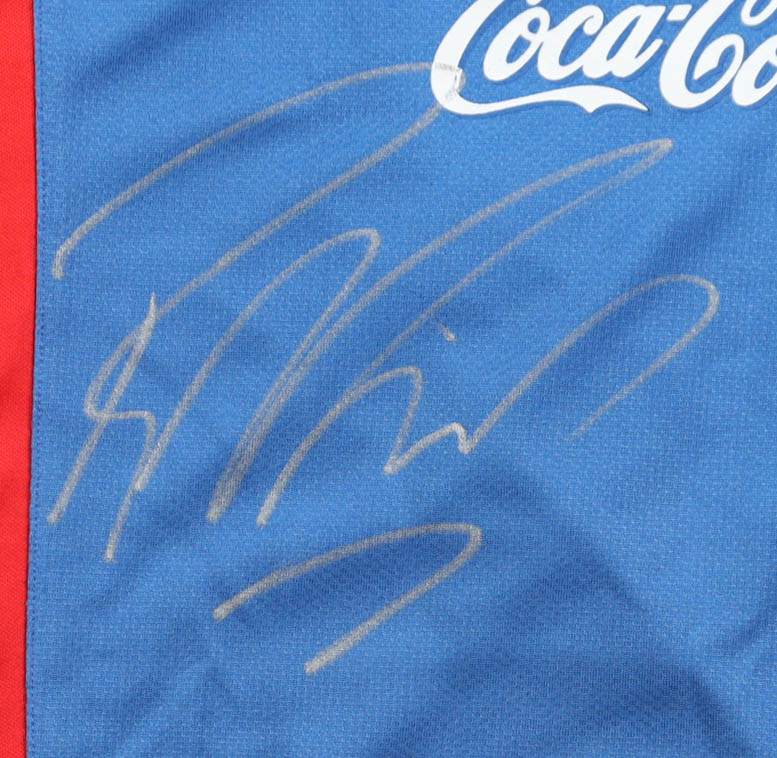 Nike authentic jersey with everything pressed and sewn on, size M. Hand-signed by Reinaldo Navia and Salvador Cabanas. Please note, the signatures are faint.