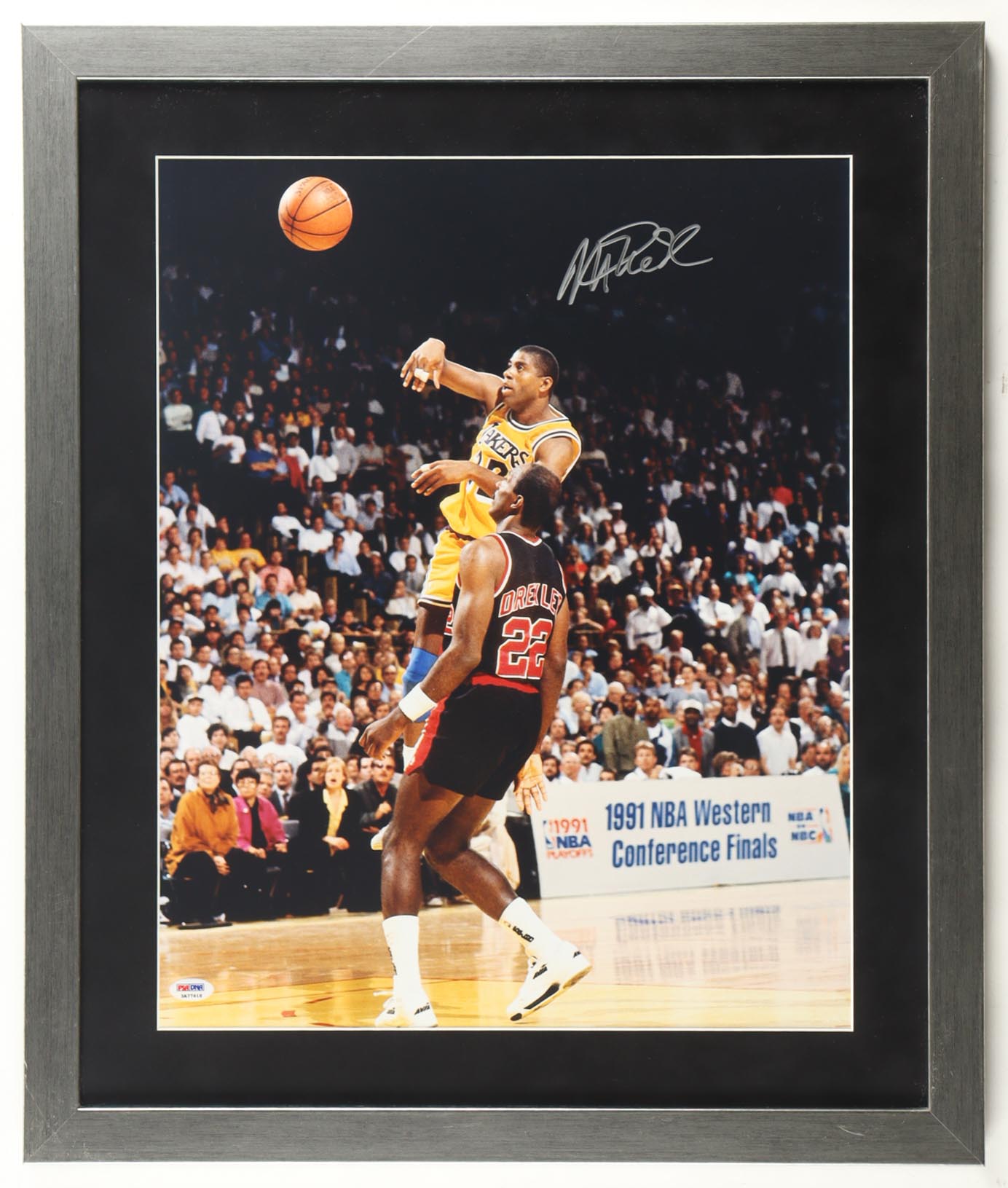 Magic Johnson Signed Lakers Custom Framed Photo Display (PSA)