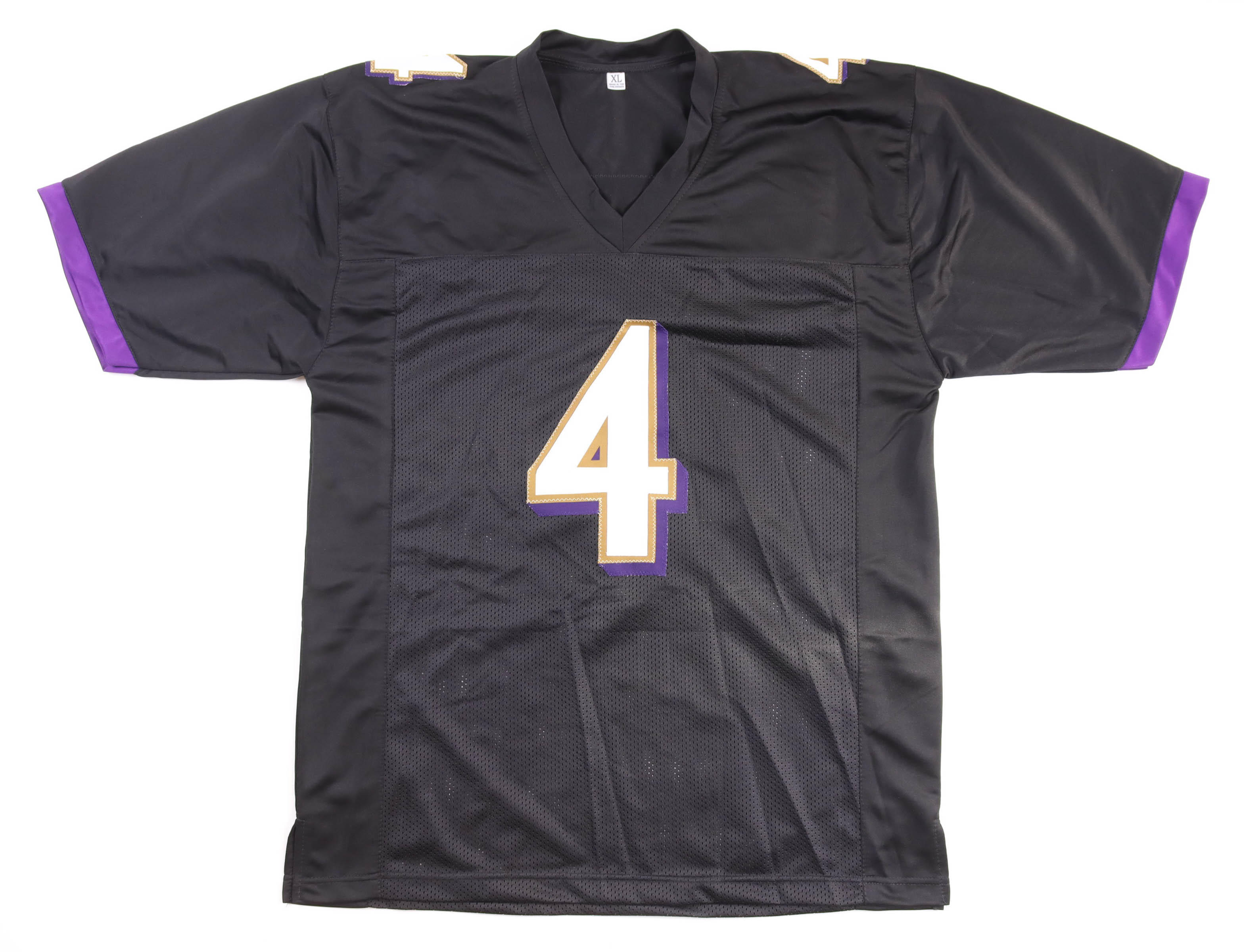 Custom jersey with everything sewn on, size XL. Has been hand-signed by Zay Flowers.