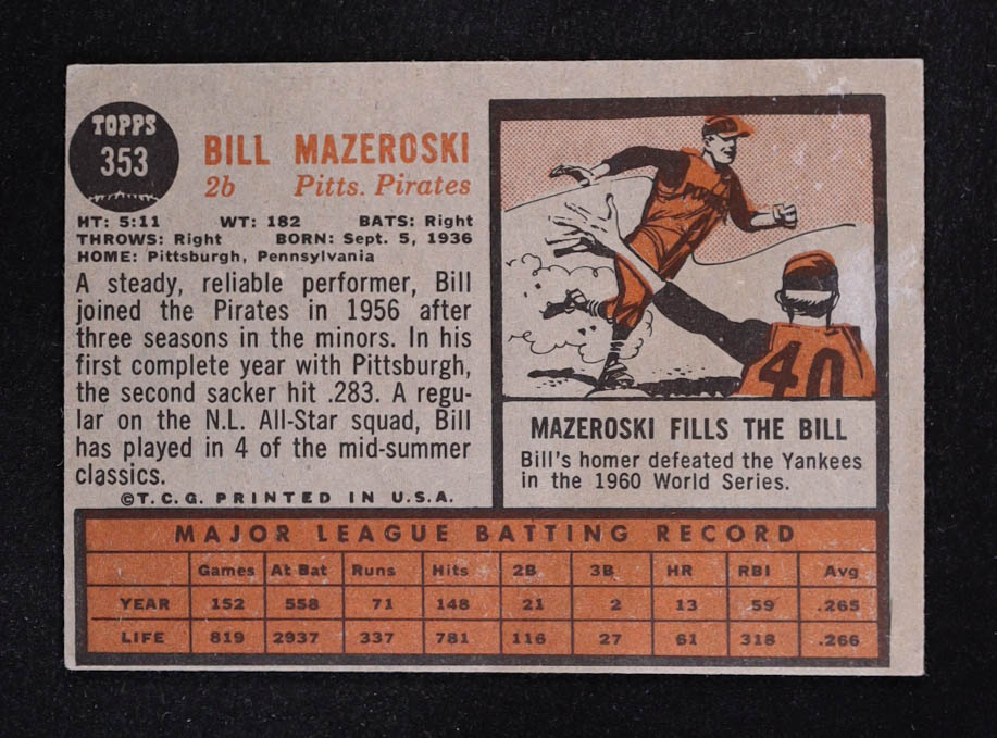 Bill Mazeroski 1962 Topps #353