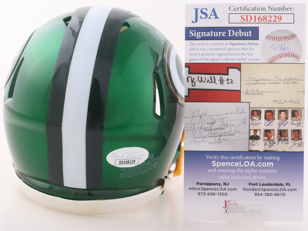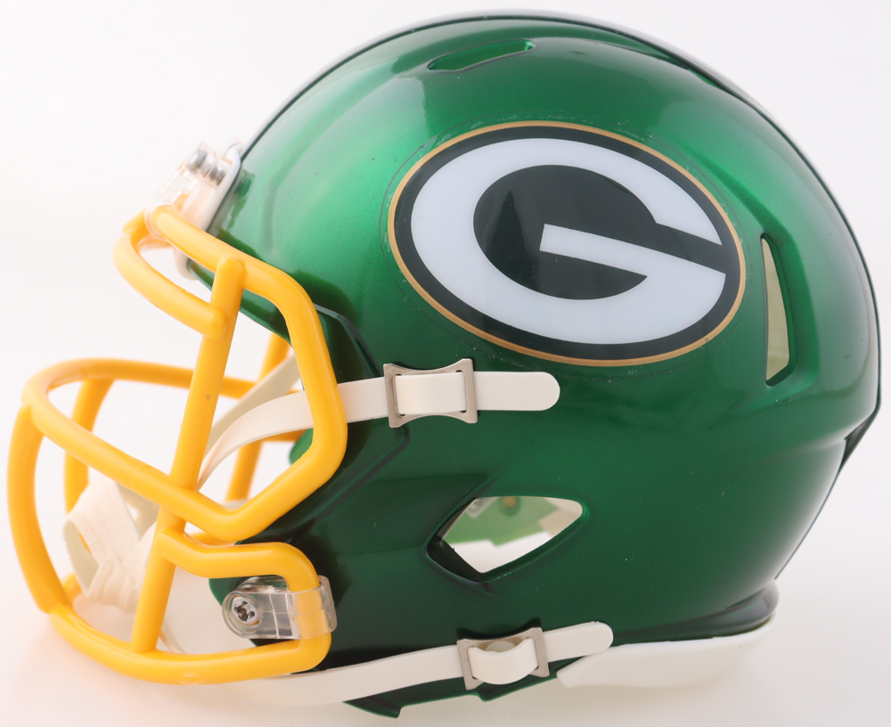 Riddell Green Bay Packers Flash Alternate Speed mini helmet. Hand-signed by Devonte Wyatt.