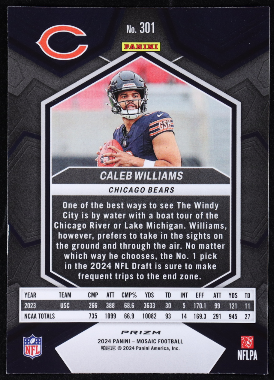 Caleb Williams 2024 Panini Mosaic Mosaic Reactive Blue #301 RC