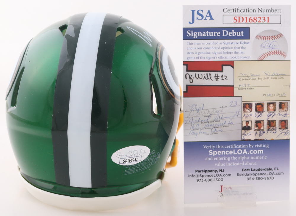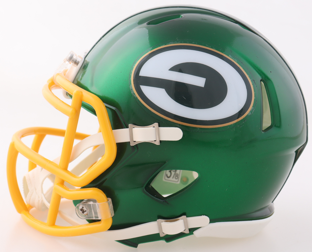 Riddell Green Bay Packers Flash Alternate Speed mini helmet. Hand-signed by Devonte Wyatt.