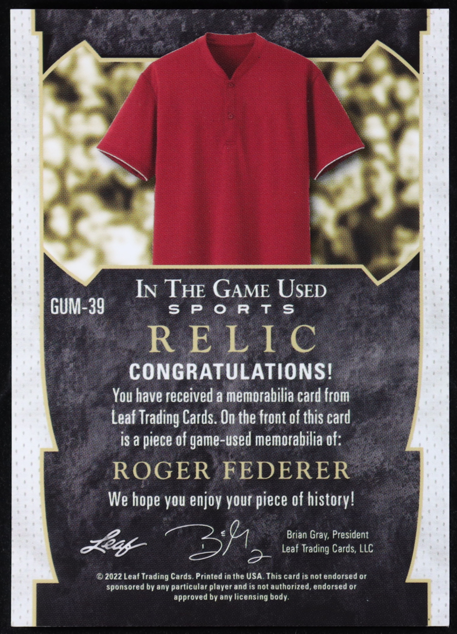 Roger Federer 2022 Leaf ITG Used Sports Red Sparkle Relic #GUM39 #16/35