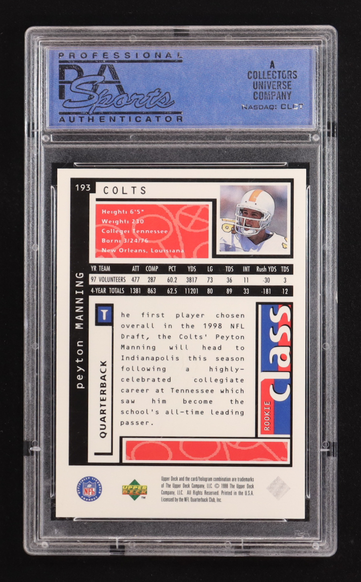 Peyton Manning 1998 Upper Deck Rookie Class #193 RC (PSA 9)