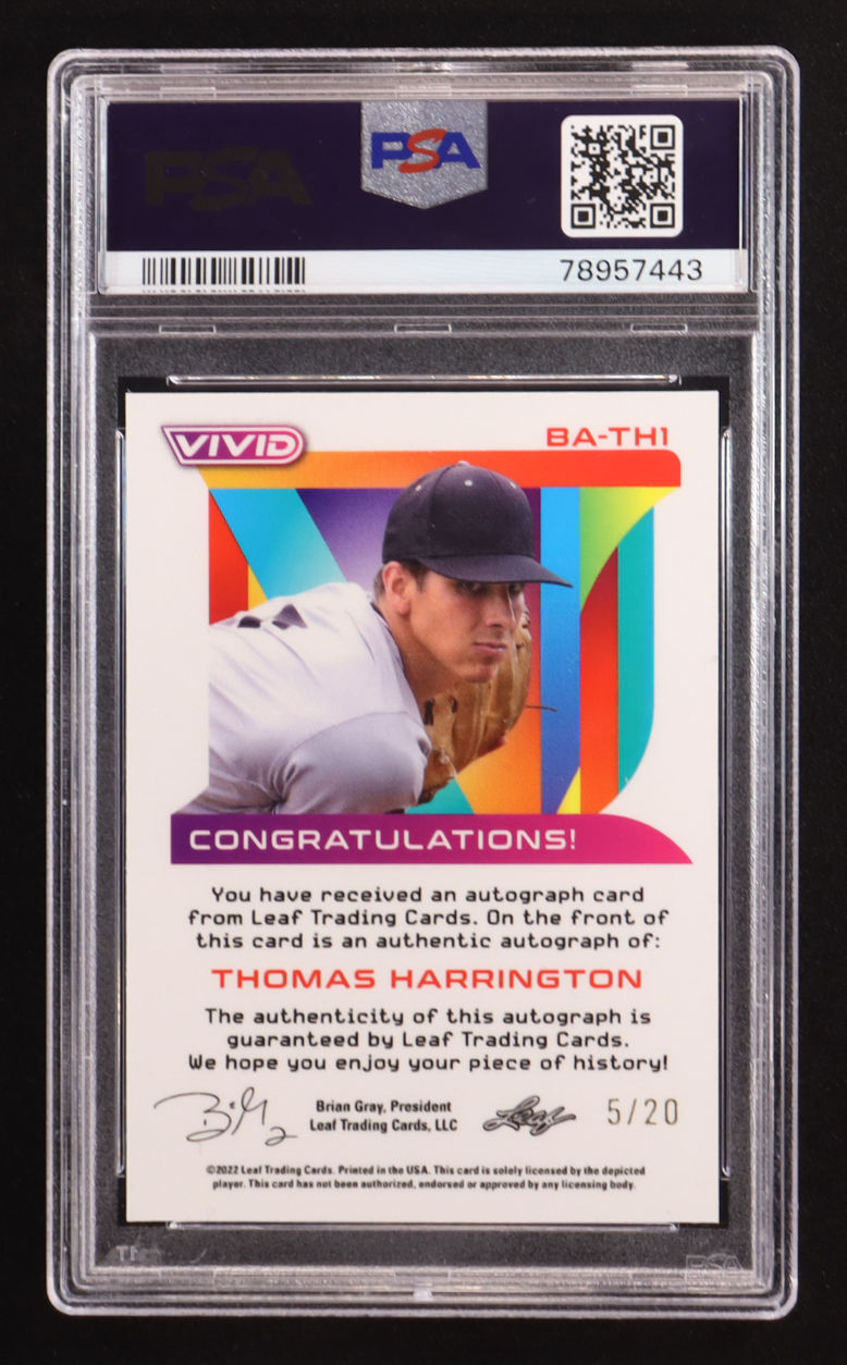 Thomas Harrington 2022 Leaf Vivid Autographs Black #BATH1 #5/20 RC (PSA 9)
