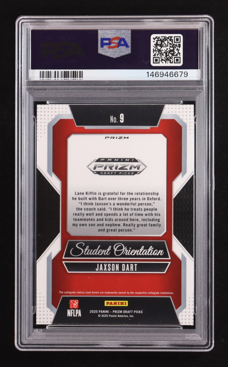 Jaxson Dart 2025 Panini Prizm Draft Picks Student Orientation Gold Ice #9 RC (PSA 9)