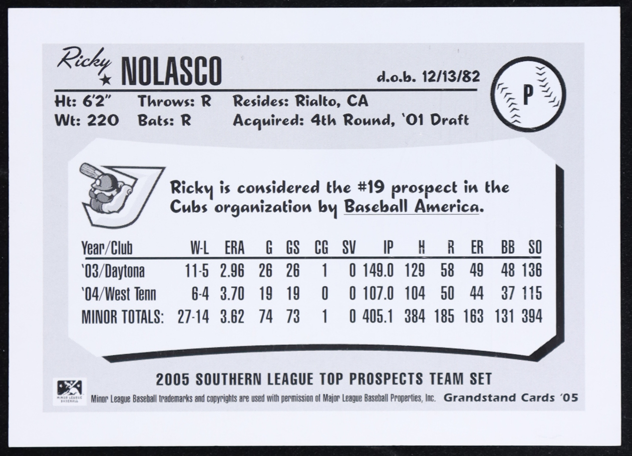 Ricky Nolasco Signed 2005 Grandstand Cards Southern League Top Prospects #NNO RC (Sportscards Authentic)