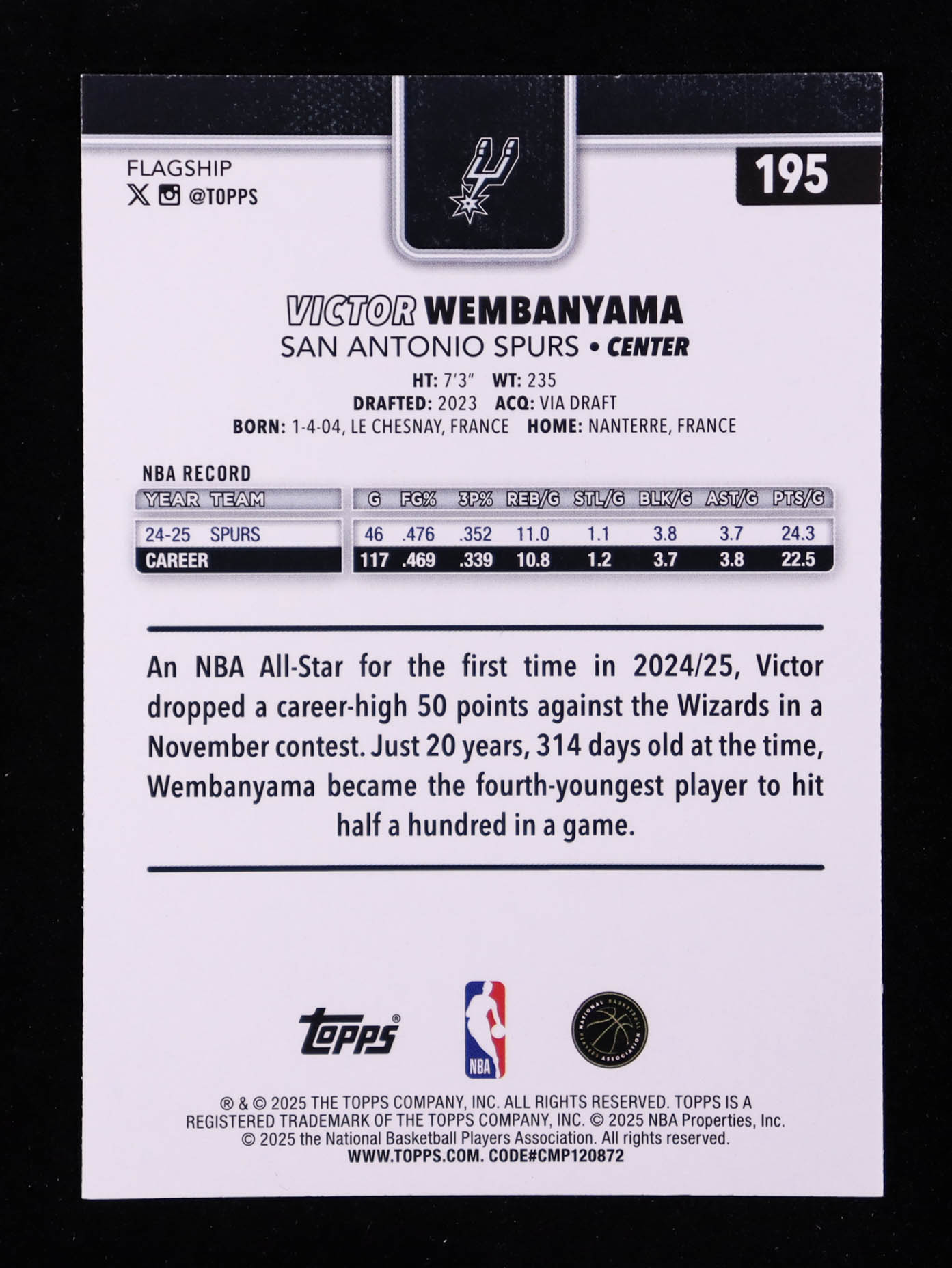 Victor Wembanyama 2025-26 Topps Sandglitter Blue #195
