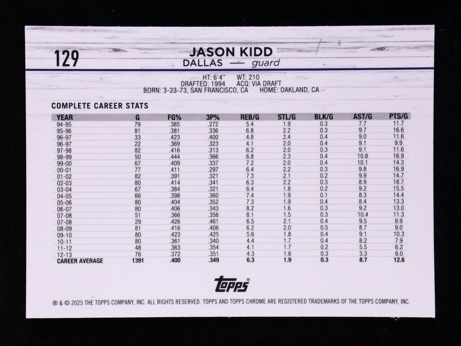 Jason Kidd 2024-25 Topps Chrome Topps Green Refractors #129
