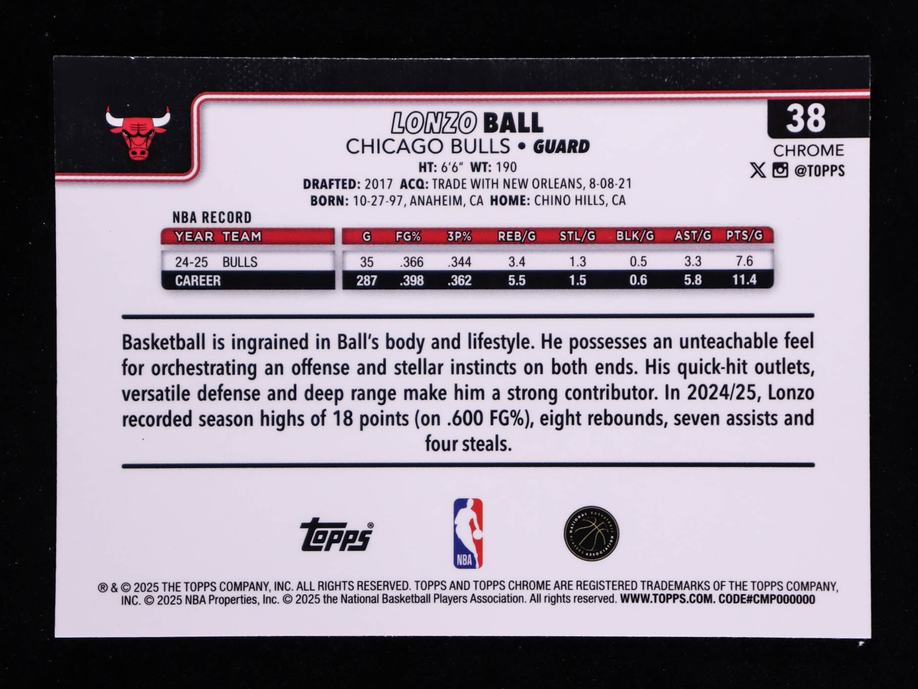 Lonzo Ball 2025-26 Topps Chrome Green Refractors #38 #73/99 RC
