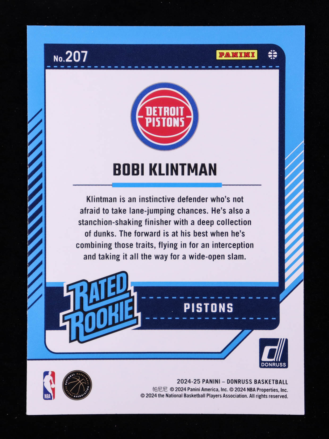 Bobi Klintman 2024-25 Donruss Holo Green Laser #207 RR RC