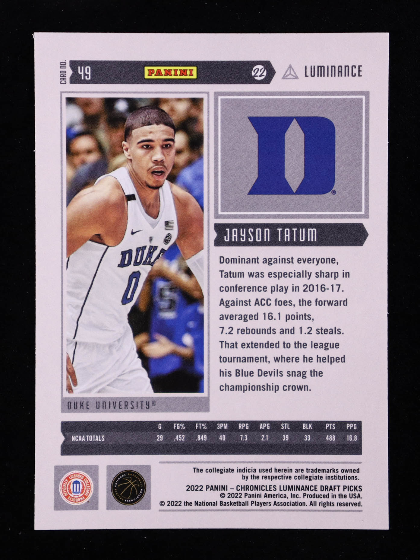 Jayson Tatum 2022-23 Panini Chronicles Draft Picks Luminance #49