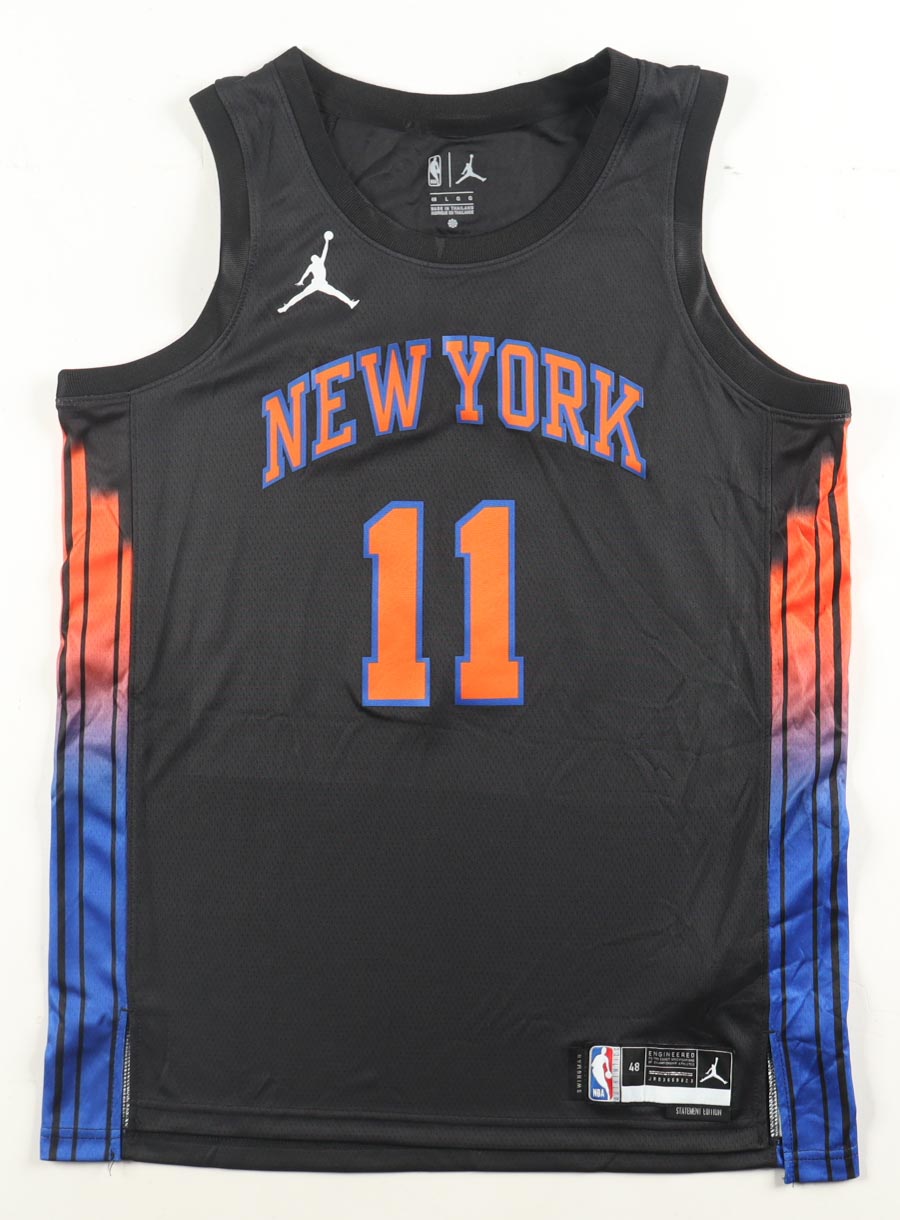 Jordan authentic jersey with everything pressed on, size 48. Hand-signed by Jalen Brunson (New York Knicks).