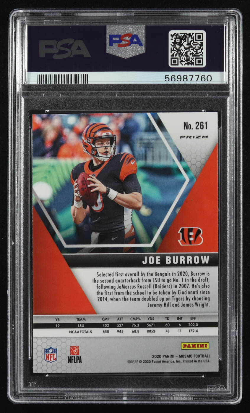 Joe Burrow 2020 Panini Mosaic Red NFL Debut #261 RC (PSA 10)