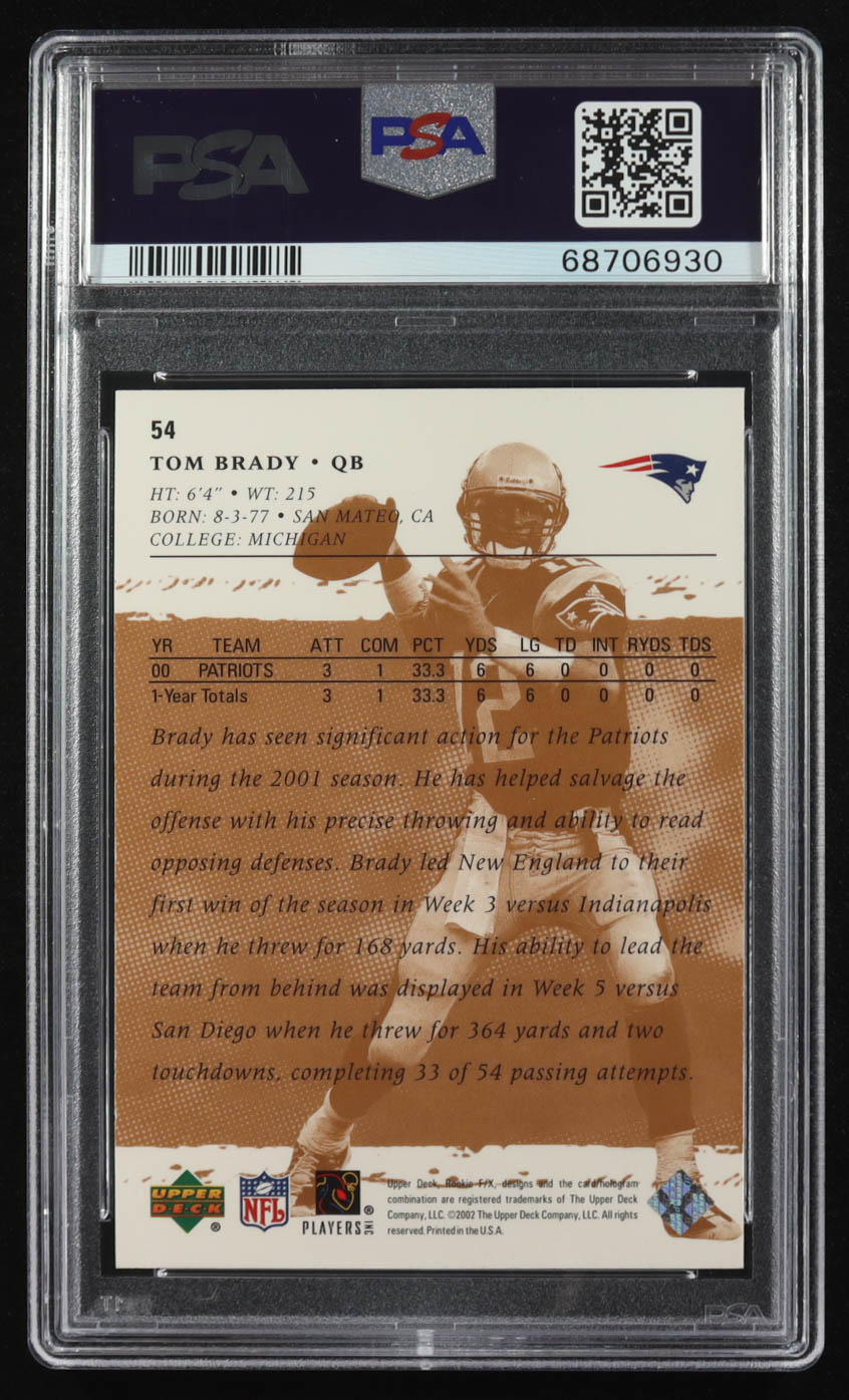 Tom Brady 2001 Upper Deck Rookie FX #54 RC (PSA 8)