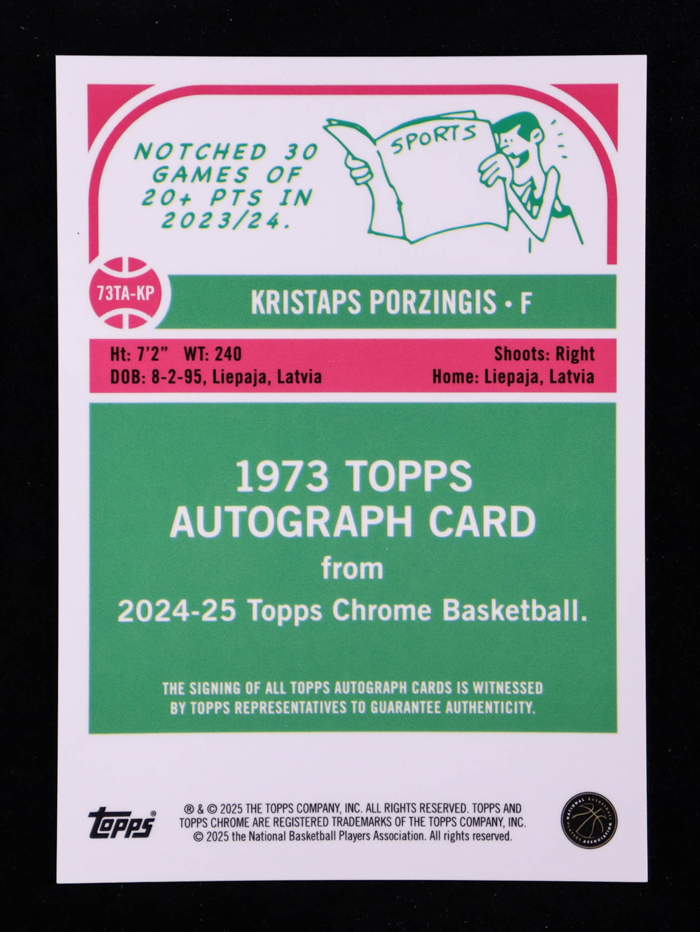 Kristaps Porzingis 2024-25 Topps Chrome '73 Topps Autographs Gold Refractors #73TAKP #08/50