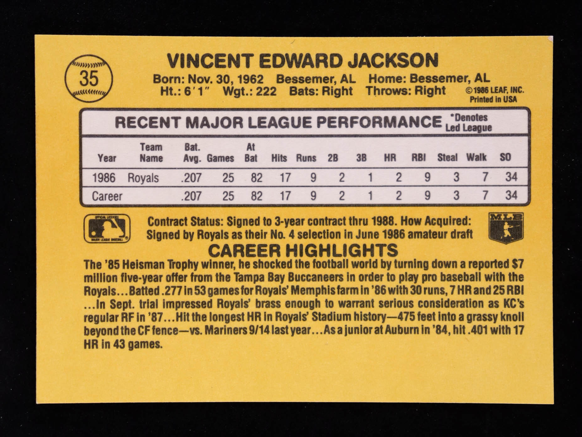 Bo Jackson 1987 Donruss #35 RC