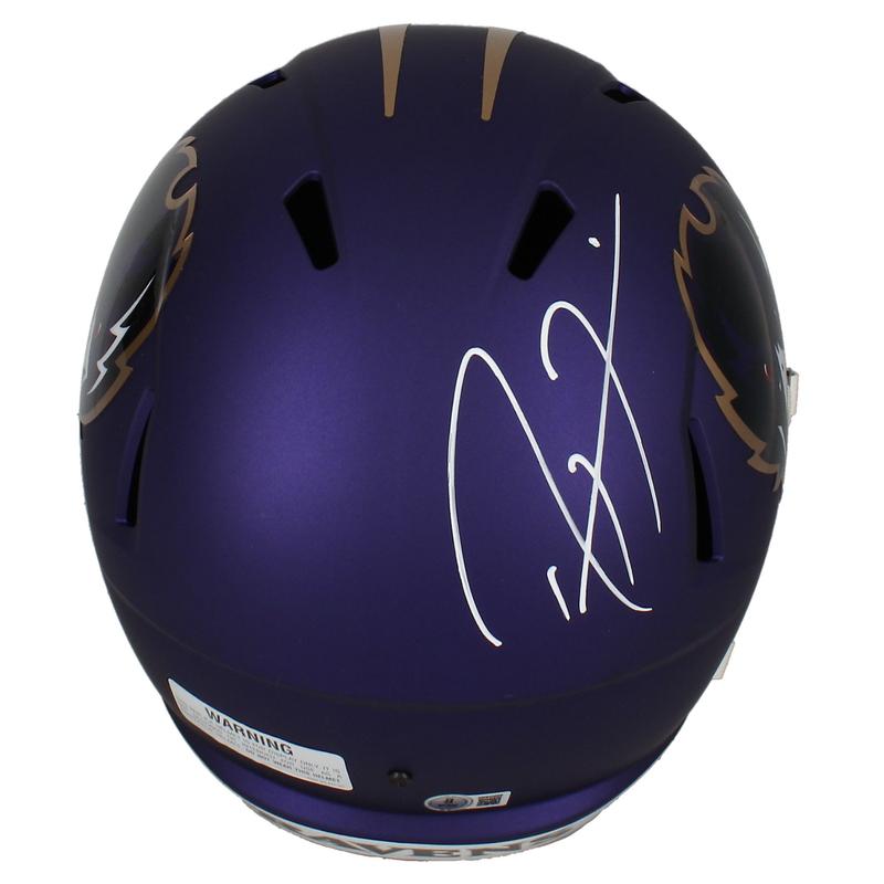 Riddell Baltimore Ravens full-size alternate speed replica helmet. Hand-signed by Ray Lewis (HOF).
