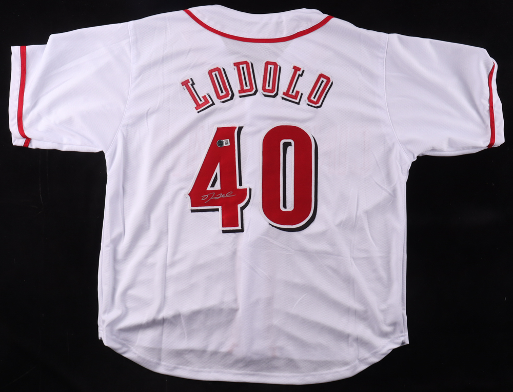 Custom jersey with everything sewn on, size XL. Hand-signed by Nick Lodolo.