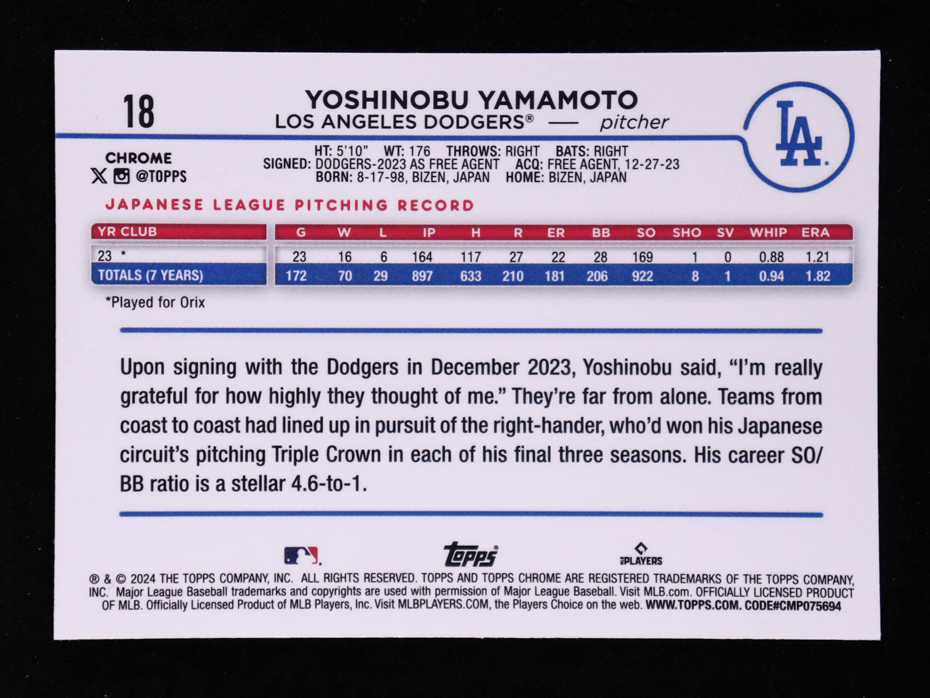 Yoshinobu Yamamoto 2024 Topps Chrome Sepia Refractors #18 RC
