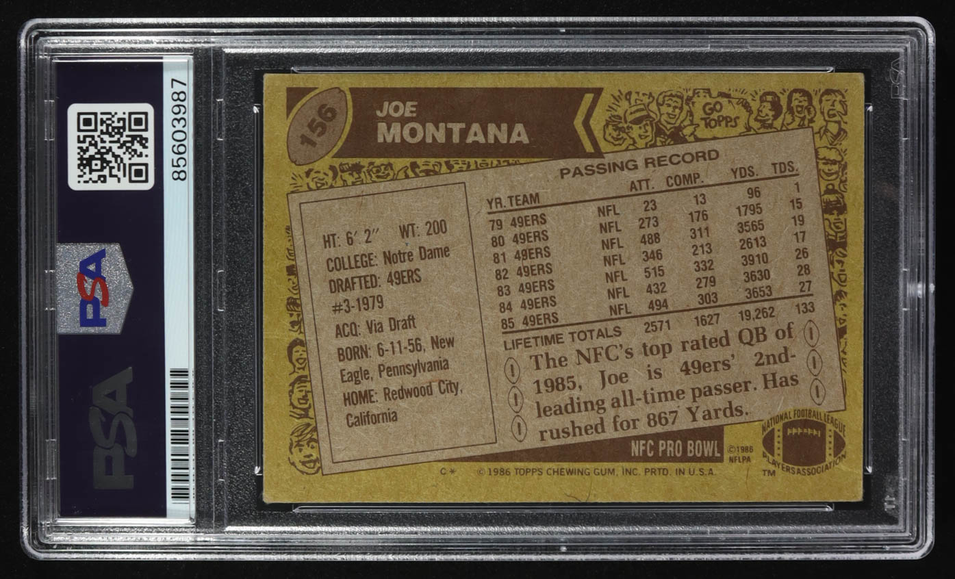 Joe Montana Signed 1986 Topps #156 (PSA)