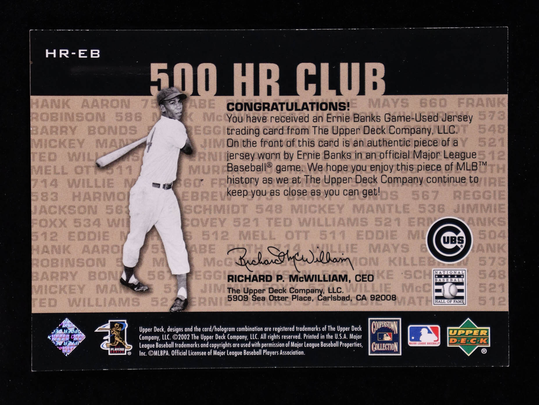 Ernie Banks 2002 UD Piece of History 500 Home Run Club Jersey #EB SP