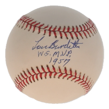Lew Burdette Signed ONL Baseball Inscribed "W.S. MVP 1957" (PSA)