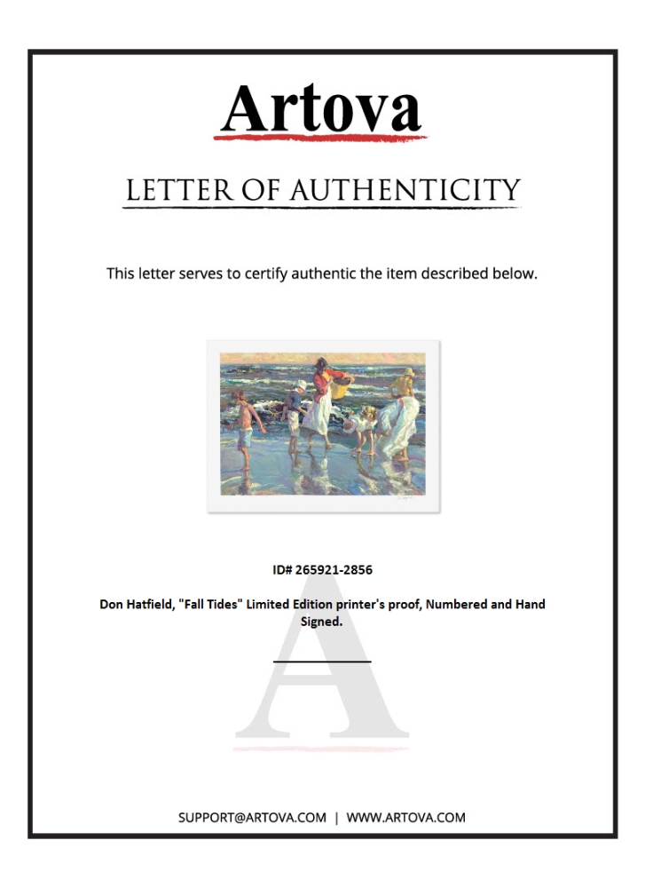 "Fall Tides" is a limited edition printer's proof serigraph on paper by Don Hatfield, numbered and hand signed by the artist. Includes Letter of Authenticity. Measures approx. 31.5" x 42" (border), 26" x 37" (image).