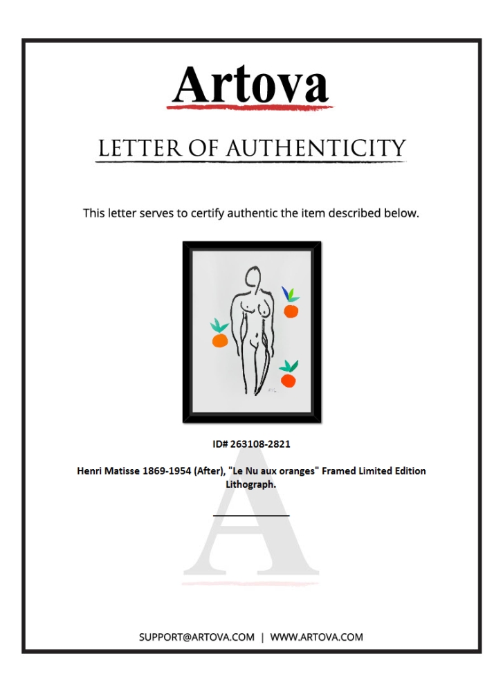 "Le Nu aux oranges" LE 28x37 Custom Framed Lithograph by Henri Matisse (Artova)