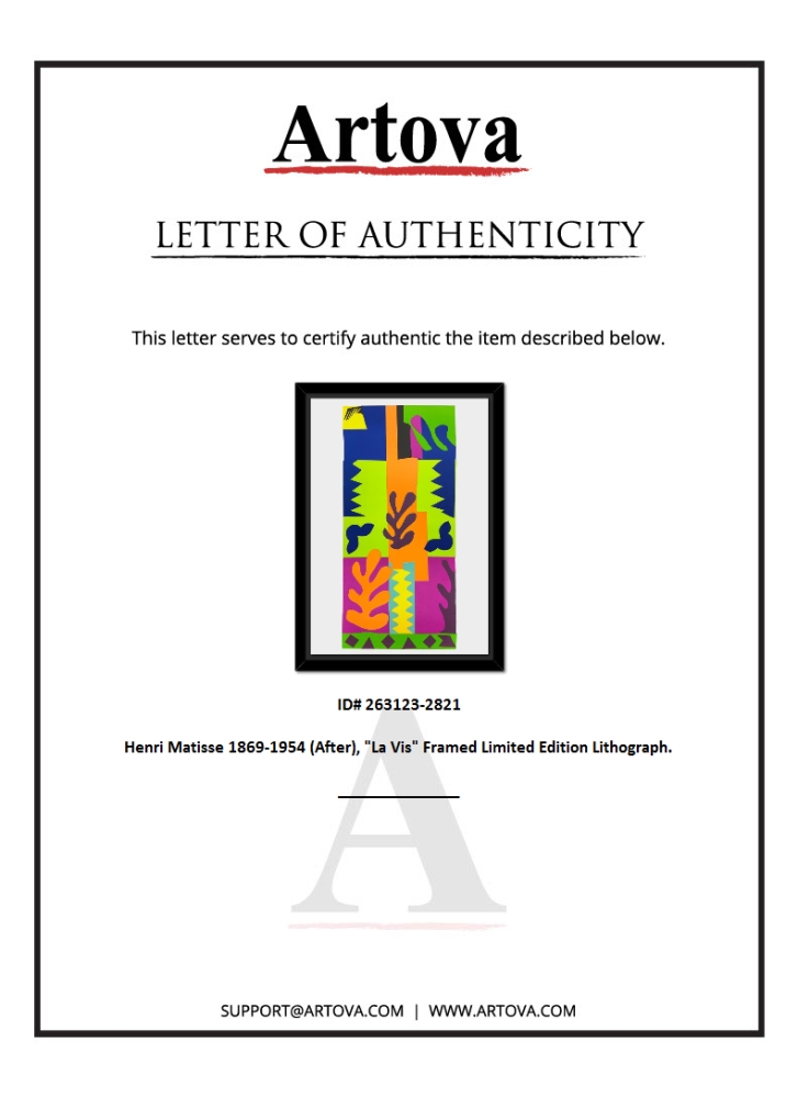"La Vis" LE 31x41 Custom Framed Lithograph by Henri Matisse (Artova)