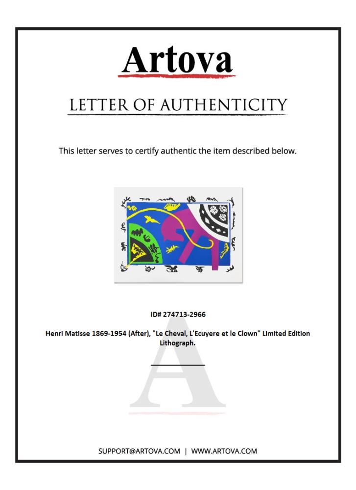 "Le Cheval, L'Ecuyere et le Clown" LE 31x23 Lithograph by Henri Matisse (Artova)