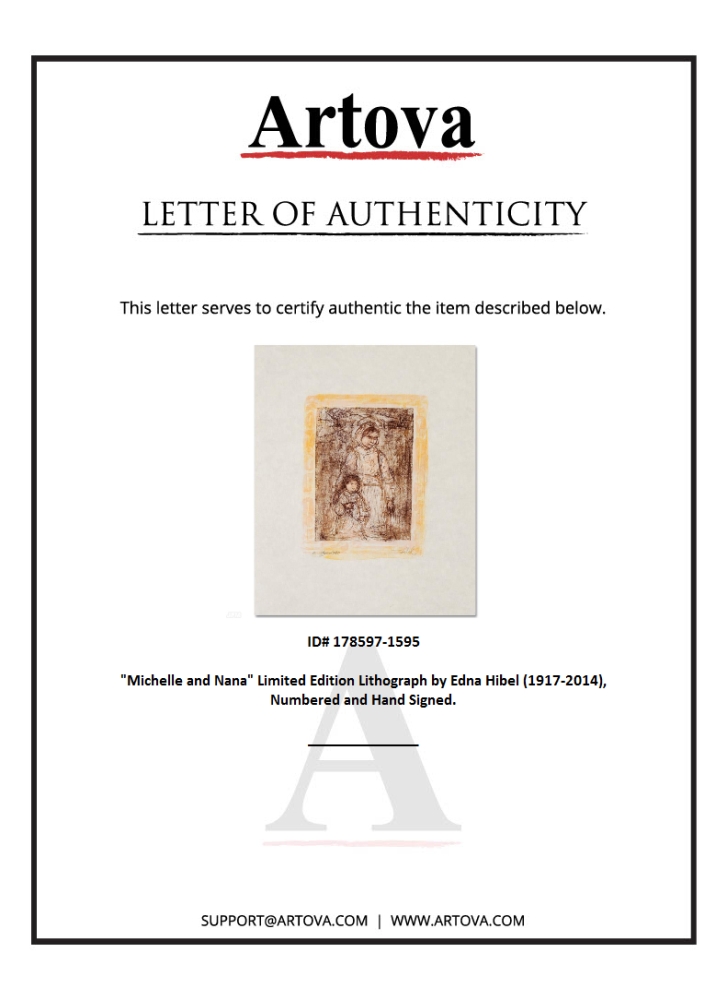 "Michelle and Nana" is a limited edition lithograph on paper, numbered and hand-signed by Edna Hibel (1917-2014). Includes Certificate of Authenticity! Measures approx. 17.5" x 25" (with border), 8.5" x 11.5" (image).