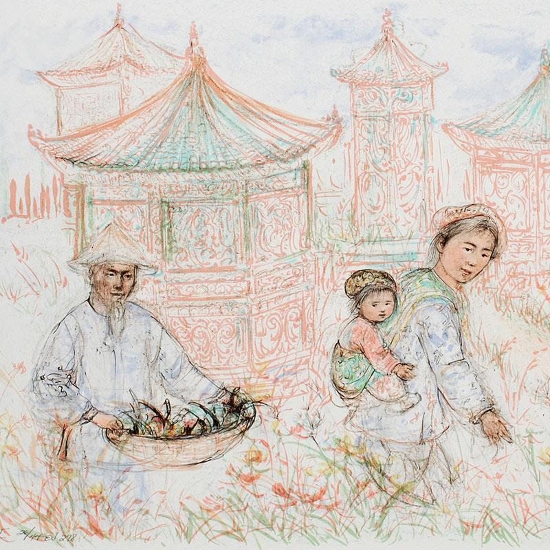 "Then and Now" LE 16x20 Lithograph by Edna Hibel (Artova)