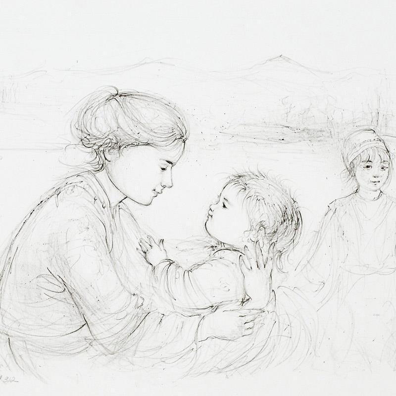 "Playful Mother and Baby" LE 16x11 Lithograph by Edna Hibel (Artova)