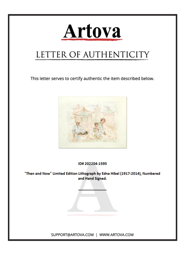 "Then and Now" is a limited edition lithograph on rice paper, numbered and hand-signed by Edna Hibel (1917-2014). Includes Certificate of Authenticity! Measures approx. 26.5" x 20" (with border), 20" x 16" (image).