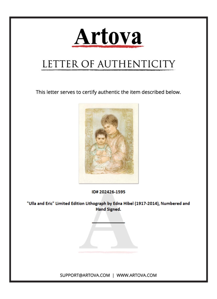 "Ulla and Eric" is a limited edition lithograph on rice paper, numbered and hand-signed by Edna Hibel (1917-2014). Includes Certificate of Authenticity! Measures approx. 22.5" x 30" (with border), 18" x 24.5" (image).