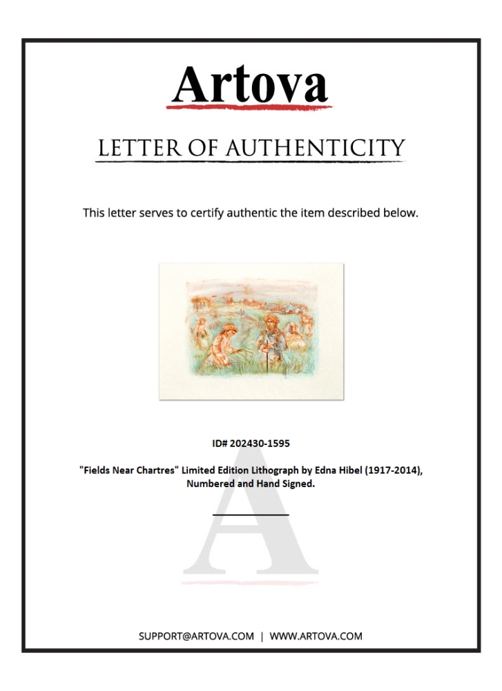 "Fields Near Chartres" is a limited edition lithograph on rice paper, numbered and hand-signed by Edna Hibel (1917-2014). Includes Certificate of Authenticity! Measures approx. 30.5" x 22.5" (with border), 22" x 16" (image).