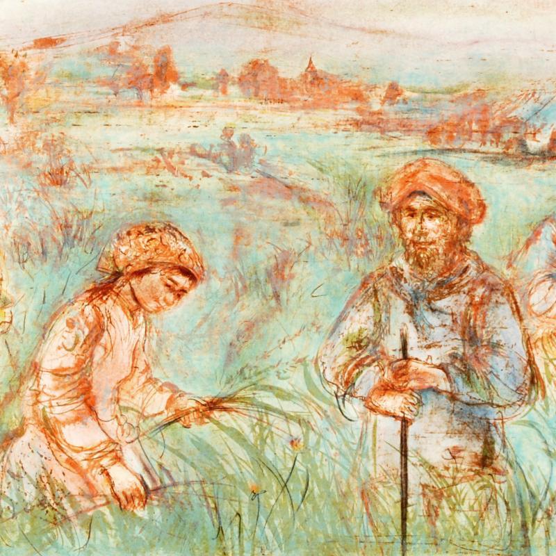 "Fields Near Chartres" LE 30x22 Lithograph on Rice Paper by Edna Hibel (Artova)