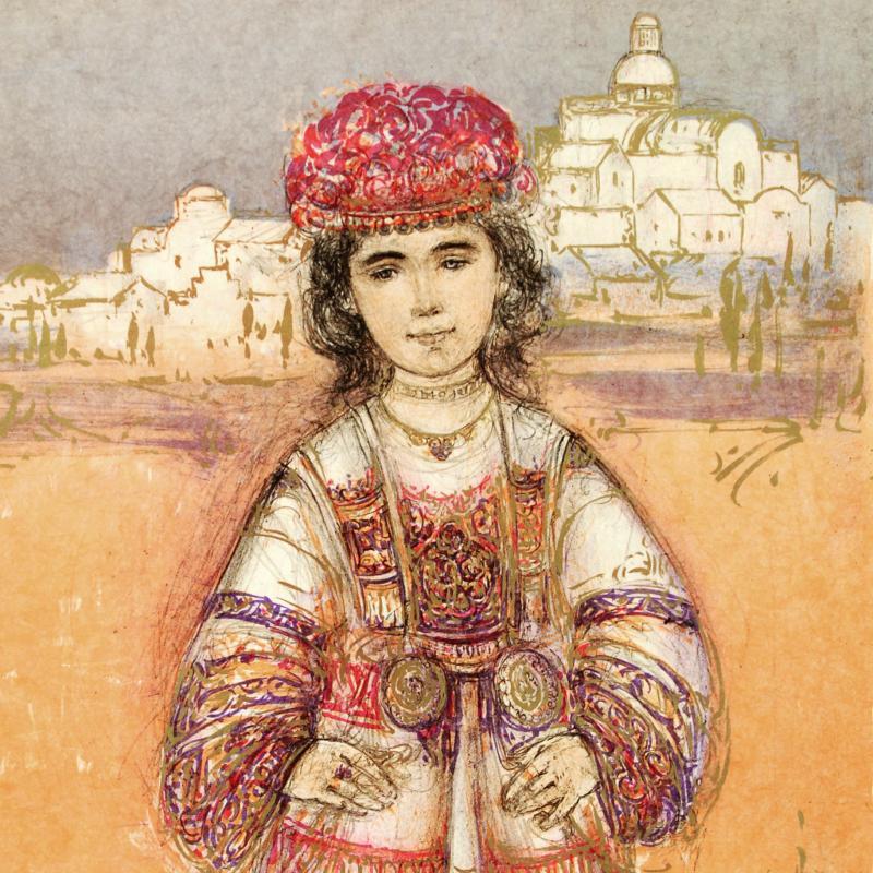 "Aegea" LE 19x25 Lithograph on Rice Paper by Edna Hibel (Artova)