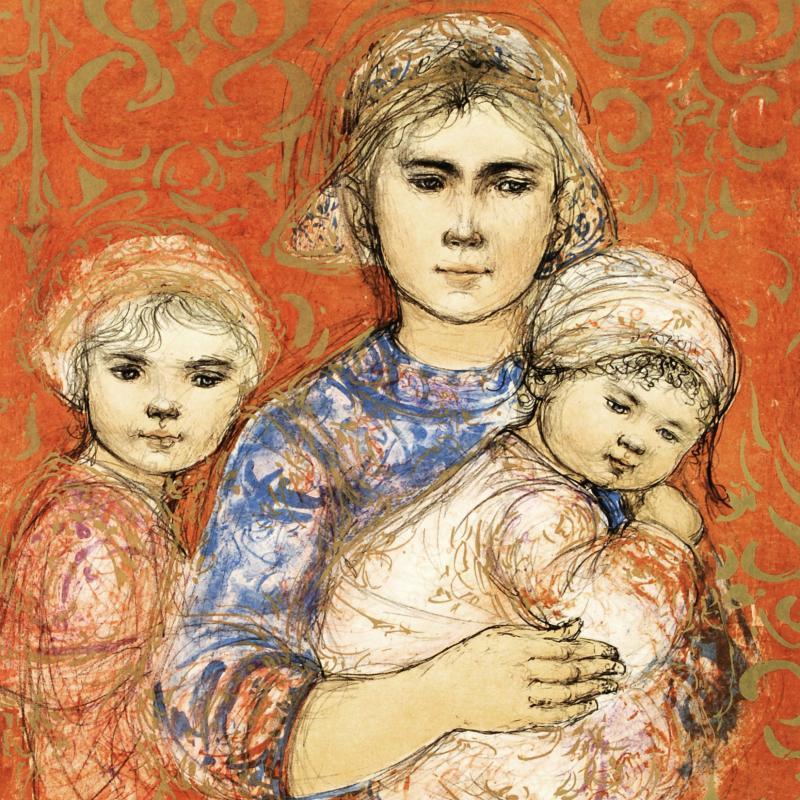 "Jenet, Mary and Wee Jenet" LE 19x25 Lithograph on Rice Paper by Edna Hibel (Artova)