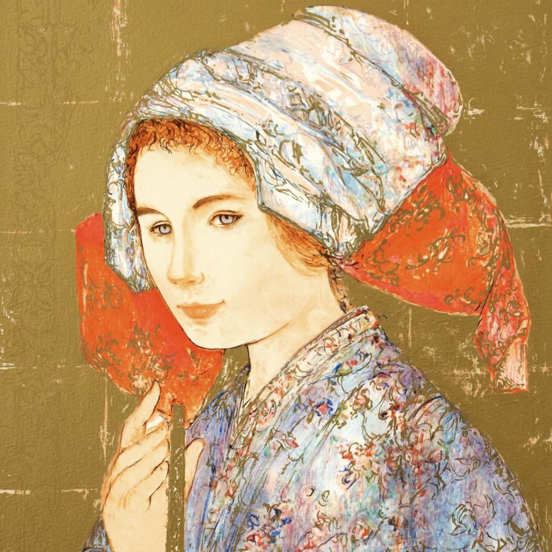 Edna Hibel (1917-2014) grew up in the Boston area and by the young age of 9, she began experimenting with painting in elementary school. Her summers where spent along the shore in Hull, Massachusetts and in Maine learning about watercolor painting. Hibel received her formal artistic training at the Boston Museum School of Fine Arts, from 1935-1939. In 1942, she earned the Sturtevant Traveling Fellowship to Mexico.
