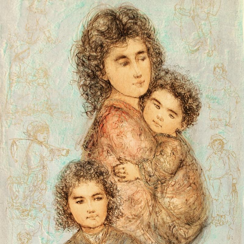 "Catherine and Children" LE 25x35 Lithograph by Edna Hibel (Artova)