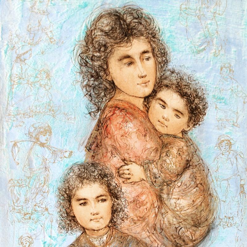 "Catherine and Children" LE 25x35 Lithograph by Edna Hibel (Artova)
